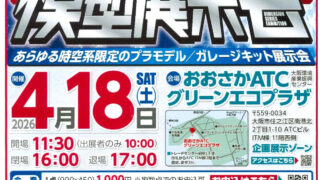 2026年4月18日(土)に大阪市住之江区のアジア太平洋トレードセンター(大阪南港ATC)のITM棟11階「おおさかATCグリーンエコプラザ」の企画展示ゾーンで開催される模型展示会「第0回 時空系模型展示会」のフライヤーを店頭にて配布中です!