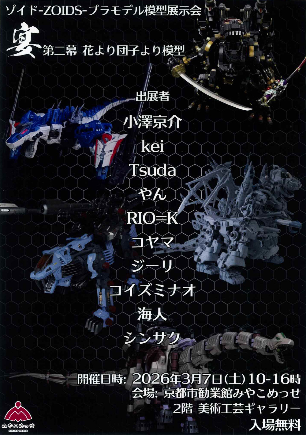 2026年3月7日(土)に京都市左京区にある京都市勧業館みやこめっせにて開催されるゾイドプラモデル模型展示会「宴」のフライヤーを店頭にて配布中です!